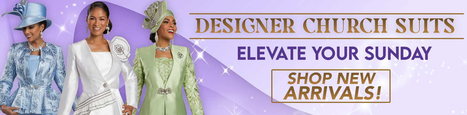 When you are looking for the top online store to purchase church clothes, designerchurchsuits.com must be the first to come to mind! We offer high-quality designer and brand name church clothes from the biggest names in the church clothing industry and all at the lowest prices online! We are the true industry leader in church suits! The Church Suit Fashion Brands we carry are the most current, popular, trending and in-demand styles for sunday, church and special occasions. Our 2022 Spring & Summer church suits collections are ready to ship. Happy Shopping!